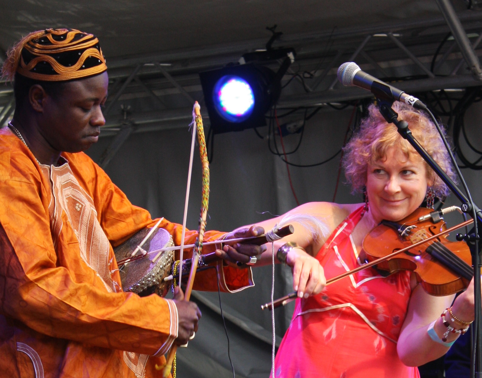 Juldeh plays the kologo and also the ritti or one string-fiddle as well as singing, whilst Griselda plays fiddle, viola and Hammond organ. The song’s called “Scotland”.