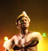 The Lions of Zululand formed up backstage and started chanting and stamping spears and shields in hand to get their energy up so by the time they hit the stage they were in top gear and flung themselves into their energetic performance.