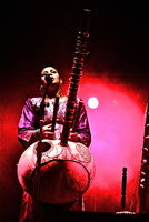 Sona was born into griot ‘royalty’ being the grand-daughter of Amadu Bansang Jobarteh and a cousin of Toumani Diabate - amongst many other famous West African griots. Versed in both traditional and classical African music styles (on the kora - the African harp) and Western Classical (cello, piano and harpsichord via the RCM and the Purcell School) as well as guitar and jazz and film music, Sona is an all-round musician of outstanding skill - and that’s leaving aside the fact that she’s one of only a handful of female kora players. She’s a woman of stature. She’s also - and I hope her husband doesn’t mind me saying this - very beautiful. Sona came on stage, heavily pregnant and gorgeously resplendent in a purple and silver outfit with two koras and a guitar. Her fabulous band consisted of a kit-drummer, a percussionist (djembe, dun-duns and a rather interesting sounding metal scraper), electric guitar, acoustic guitar, bass and two backing singers (in blue and silver outfits).