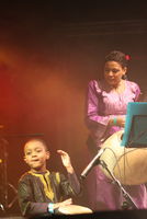 However, there was a unexpected highlight near the end of the set, when she announced that there was a very special guest waiting patiently backstage. Uh? Who could this be? And then her husband came on, carrying a small stool and accompanying their young son (just 5 years old!) and a small djembe drum. He calmly sat down at the front of the stage just to the side of his mum and waited for the music to start. Cute, doesn’t even cut it! You have to see the photos! Not fazed in the slightest by the big stage, enormous tent and large crowd, little Kwame Sidiki Jobarteh-Codjoe waited for Sona to start the tune and launched himself into it, slapping away at his miniature djembe drum like a true pro, only occasionally looking back to check he was still in time with the adult percussionist.