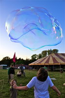 There were bubbles like doughnuts, bubbles like sausages, bubbles with bubbles in them, misshapen bubbles, multicoloured bubbles, all produced by 5 foot poles with 10 foot or longer ropes stretched between them and a special 15-20 foot knotted version that produced scores of bubbles in long streams.