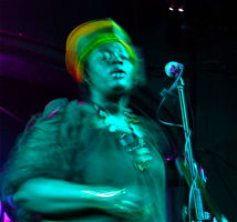 Behind and virtually invisible in the dark pit that constitutes the further recesses of the Hare and Hounds stage was Mouctar, the kit drummer; invisible to the eyes, but completely on point with the complex rhythms and dynamics. This was one drummer who made his personality and presence felt through sheer artistry. I loved what he was doing.
