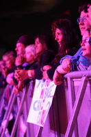Planty's singing. Somebody's singing anyway. Song ends, huge roar. Second song. Again I can only hear a slow, brooding, insistent ostinato on the bass. It's so difficult to hear properly in this area outside of and behind the stage. It's all echo and reverb and weird pulsations. A distinct lack of clarity. God, I hope it sounds better out front. The music feels very much rock orientated. It goes into double-time. The next one has the feel of a boogie-woogie.
