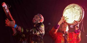 Hailing originally from Tajikistan and now resident in Israel, the Alaevs are from a Central Asian Jewish background. Their music draws upon the traditions of both Tajikistan and the neighbouring Bukharan region of Uzbekistan and heavily features vocals and percussion, often played on hand-held frame drums (called doira), although they also incorporate zither, accordion, violin, bass guitar, drumkit, clarinet and timbales.