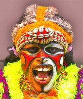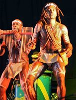 Their panpipes have more pipes than the traditional South American ones most people are familiar with - in fact they look like someone’s stuck about three sets of them in a row about 18” to 2 foot wide. But they tend to use them in a more polyrhythmic style that is augmented with song, drums, dance and their large bamboo ‘boomwhackers’ (a series of thick bamboo pipes mounted on a frame and thwacked with a paddle - or just the end of a flip-flop! - to produce a ghostly note).
